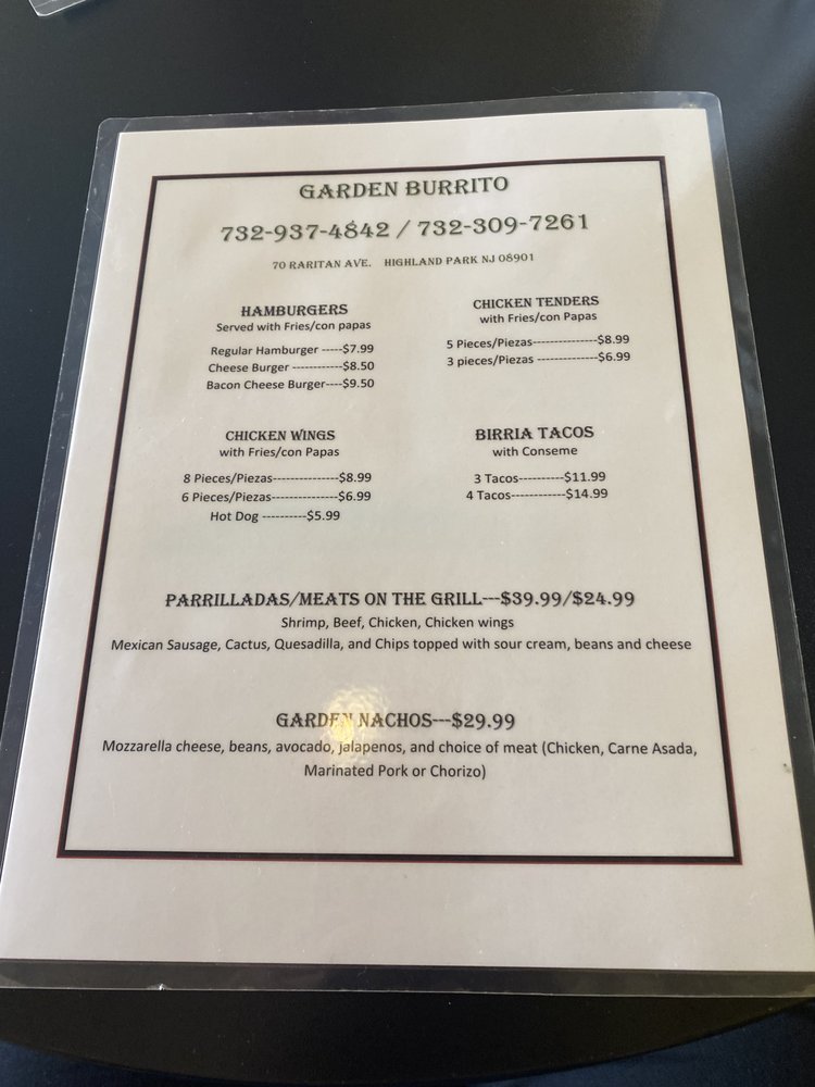 Garden Burrito, located at 70 Raritan Ave in Highland Park, NJ, is a hidden gem offering authentic Mexican cuisine. With options like Birria Tacos, customizable Burritos, and flavorful Tacos, this spot is a must-visit for food enthusiasts. Customers rave about the generous portions and delicious flavors, with standout items like the vegetarian burrito filled with tasty veggies and the award-worthy salsa verde. The cozy ambiance and friendly service add to the overall experience. If you're in the area, Garden Burrito is the go-to spot for a satisfying meal that won't disappoint.
